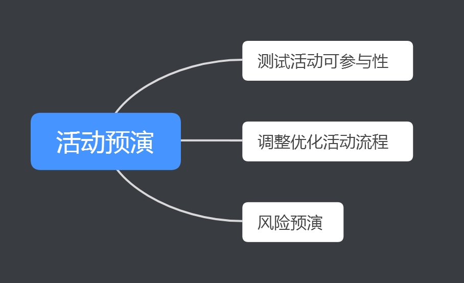 活动预演是必不可少的步骤,很重要。可以先找少量用户完整的走一遍活动流程,一方面做到自己对活动的全貌有更清晰的认知,也便于通过预演找到容易发生风险的节点;另一方面通过预演可以再来优化一遍活动,包括参与门槛、流程、海报等,使得活动效果距离成功更进一步。